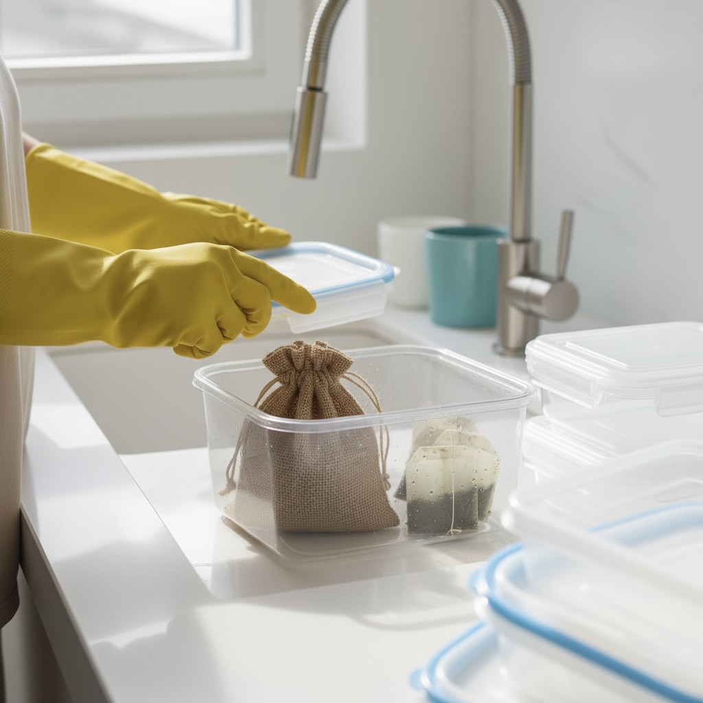 밀폐 용기에서 음식물 냄새가 배어 빠지지 않을 때 레몬 껍질이 유용합니다. 레몬의 상큼한 향이 냄새를 중화시켜 줍니다.